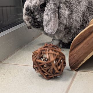 Dieser etwa 8-jährige Widderkaninchen-Mann musste sein bisheriges Zuhause schweren Herzens verlassen, da sein Besitzer ihn aus gesundheitlichen Gründen nicht mehr versorgen kann.